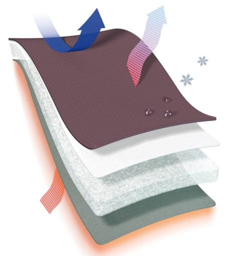 Breathable Produkt cechuje się wysoką oddychalnością, możliwą dzięki zastosowaniu materiałów odprowadzających cząsteczki pary wodnej na zewnątrz odzieży.