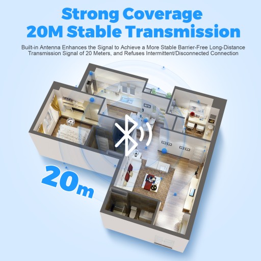 ✅ STABILNE POŁĄCZENIE : TEN BEZPRZEWODOWY ADAPTER 5.3 OBSŁUGUJE DUŻE ODLEGŁOŚCI I STABILNĄ TRANSMISJĘ DO 20 METRÓW, ZAPEWNIAJĄC SWOBODĘ RUCHU.