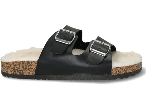 Czarne klapki z klamerkami i futerkową wkładką Casu H20X17/B