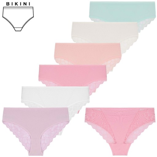 Majtki figi damskie bawełniane z koronkowym tyłem 6-pak - Wyjątkowy komfort i elegancja w pastelowych odcieniach, które łączą w sobie niezrównany komfort, solidne wykonanie oraz subtelny wdzięk koronki. W zestawie znajdziesz aż 6 par majtek w delikatnych pastelowych kolorach, które dodadzą uroku Twojej bieliźnie i codziennym strojom.