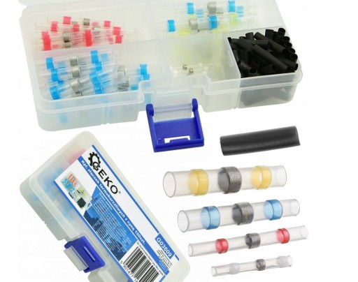 GEKO - ZŁĄCZKI RURKI KOSZULKI TERMOKURCZLIWE Z CYNĄ 0,25-6mm2 100szt. 5 ROZMIARÓW