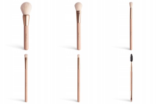 Zestaw 6 syntetycznych pędzli do makijażu w złotej tubie, który pozwoli wykreować kompletny look. Subtelne połączenie miękkiego włosia, beżowego trzonka i złotej skuwki sprawia, że każdy z pędzli nie tylko umożliwia wygodną i łatwą aplikację kosmetyków do makijażu, ale również doskonale prezentuje się w eleganckiej złotej tubie zamykanej na dwa zatrzaski.