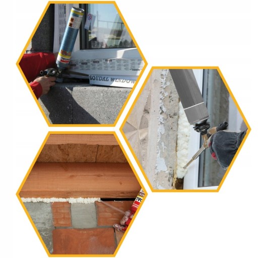 - Uszczelnienia przy montażu stolarki okiennej i drzwiowej z drewna, PCV oraz aluminium