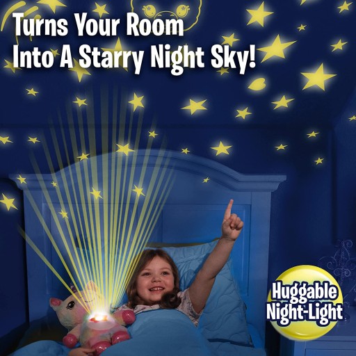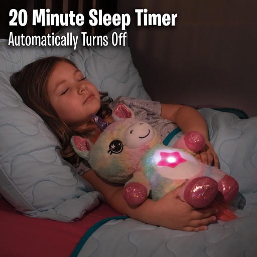 LŚNIĄCY JEDNOROŻEC Star Belly Dream Lites to miękka i przytulna nocna lampka dla dzieci, która tworzy świecące gwiazdy i zabawne kształty, unoszące się na ścianach i suficie; pomagając stworzyć spokojne i kojące otoczenie do snu.