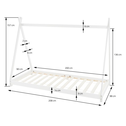 Кровать Типи с реечным каркасом 90х200 см White Wood