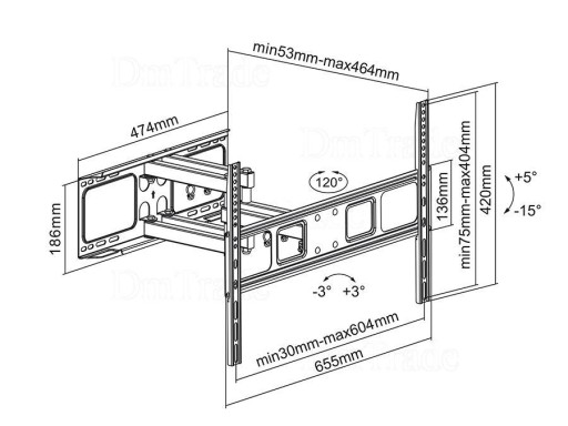 - Regulowana odległości od ściany: od 53mm do 464mm