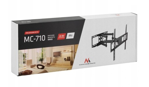 Uniwersalny uchwyt ścienny służy do montażu telewizorów LCD, LED i plazmowych oraz monitorów różnych marek o wadze do 40kg i o wymiarach przekątnej ekranu od 37” do 70”