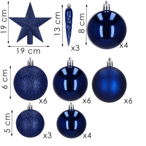 BOMBKI NA CHOINKĘ STROIK 33 SZT CHOINKOWE 8/6/5 ZESTAW NIETŁUKĄCE + GWIAZDA