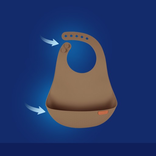 Regulowane zapięcie oraz ergonomiczny kształt śliniaka, a w szczególności jego wyprofilowane boki zapewniają swobodę ruchów. Produkt ma oryginalny design, dzięki unikalnej strukturze kieszonki, a dodatkowo jest łatwy w czyszczeniu i nadaje się również do mycia w zmywarce.