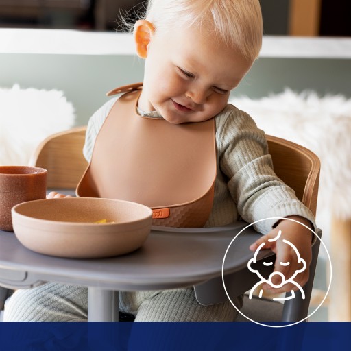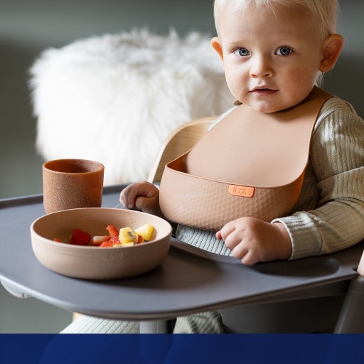 - twarda i głęboka kieszeń zatrzymuje resztki jedzenia, kieszeń okala brzuszek, sięgając szeroko na boki dziecka.