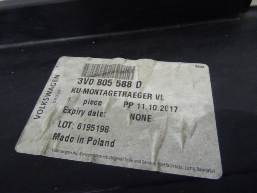 SKODA SUPERB III 2015- WZMOCNIENIE PAS PRZÓD 3V0805588D