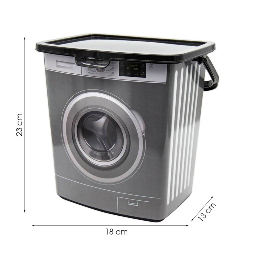 Pojemnik na detergenty wykonany został z najwyższej jakości tworzywa sztucznego. Docelowo przeznaczony jest jako przedmiot użytku codziennego, w którym możemy przechowywać proszek, czy kapsułki do prania. Jednak ze względu na swoją jakość i specyfikę wykonania możemy go wykorzystać w każdy inny, przydatny sposób. Na przykład do przechowywania zabawek, ozdób lub przedmiotów, które w sprytny sposób chcemy ukryć.
