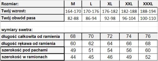 Rozmiar XXXL jest na osobę o wzroście 188-194 cm