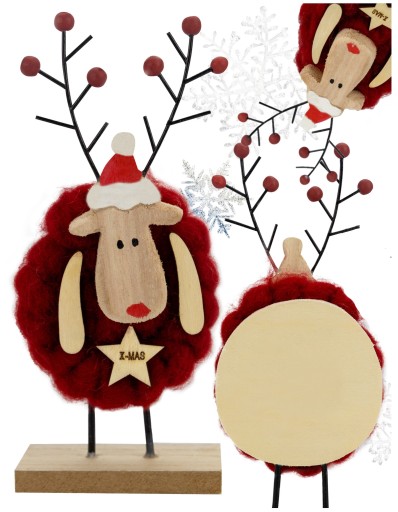 ❄️ Renifer ma około 18 cm wysokości i wykonany jest z drewna. Pokryty uroczą, wełną w kolorze czerwonym.
