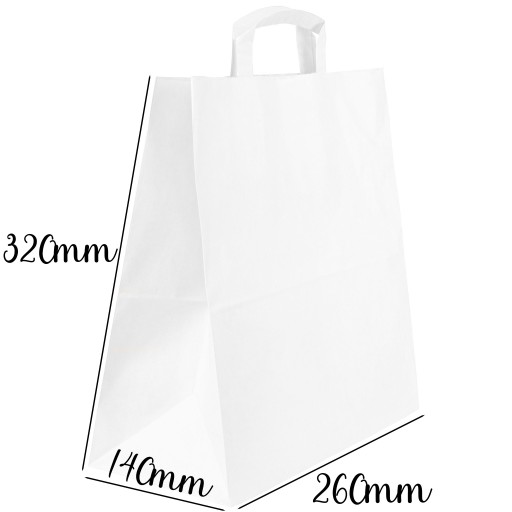 ❇️TORBA PAPIEROWA Z PŁASKIM UCHEM 260/140/320mm 26/14/32cm W KOLORZE BIAŁYM EKO Z TWOIM NADRUKIEM❇️