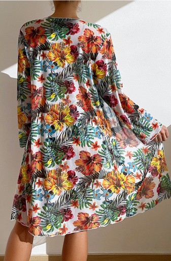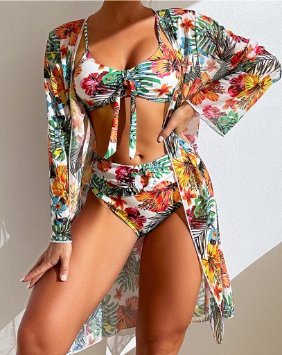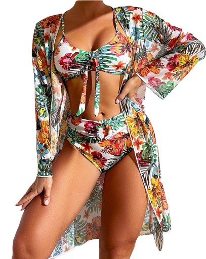 STRÓJ KĄPIELOWY DAMSKI DWUCZĘŚCIOWY NARZUTKA WYSOKI STAN KWIATY XL