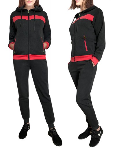 Теплый спортивный костюм ЖЕНСКИЙ СПОРТИВНЫЕ КОСТЮМЫ с КАПЮШОНОМ 9124 КОМПЛЕКТ черный 3XL