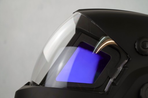 - Panoramiczny filtr spawalniczy zapewnia szerokie pole widzenia, umożliwiając operatorowi precyzyjne obserwowanie i kontrolowanie procesu spawania bez potrzeby podnoszenia przyłbicy.