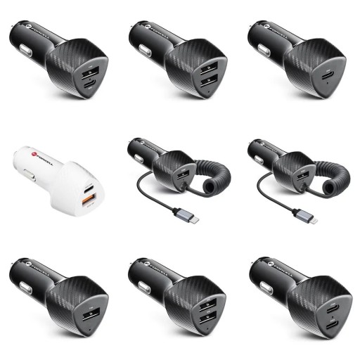 Niezwykle funkcjonalna ładowarka samochodowa z serii FORCELL CARBON. Wyposażona w dwa porty ładowania: USB-C i USB. Wspiera protokoły szybkiego ładowania QC 3.0 i PD 3.0. Posiada kilkustopniowy system zabezpieczeń.