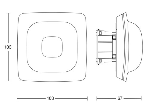 - Pasywny czujnik obecności na podczerwień z kwadratową detekcją 360°