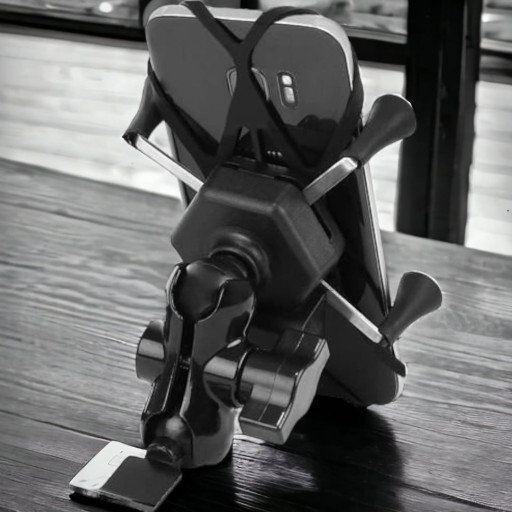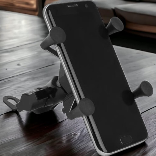 Przeguby kulowe pokryte są warstwą twardej gumy, gwarantując stabilność nawet w trudnych warunkach terenowych. To oznacza, że pozycja urządzenia nie ulegnie zmianie nawet podczas jazdy offroadowej. Uchwyt jest kompatybilny z z lusterkami.