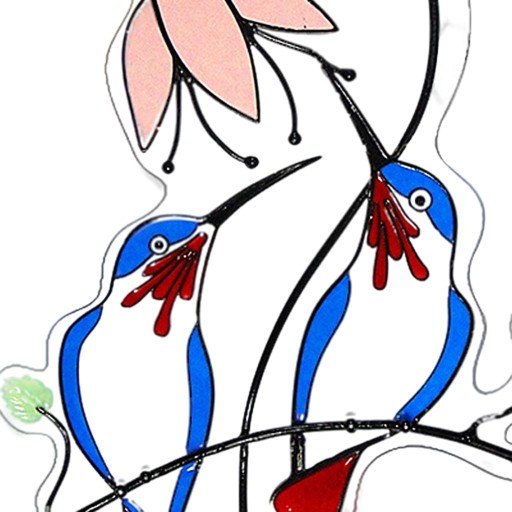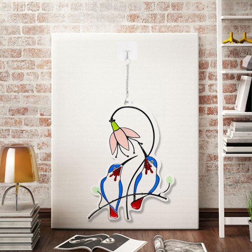 Panel Witrażowy Okienny Z Ptakami Wiszący 13,8x19,3cm Niebieski
