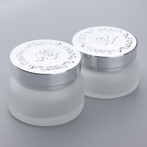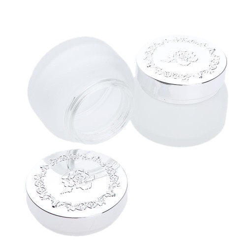 Słoiki kosmetyczne z wysokogatunkowego zagęszczonego szkła, z białymi wewnętrznymi pokrywkami i zakrętkami o fakturze kwiatu róży 3D