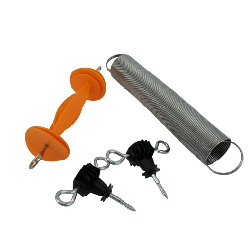 Gotowy zestaw akcesoriów i elementów potrzebnych do zainstalowania bramy w ogrodzeniu pastwiskowym, które jest zasilane prądem elektrycznym. Zestaw zaprojektowany tak, aby ułatwić instalację i utrzymanie bramy w systemie ogrodzenia elektrycznego.