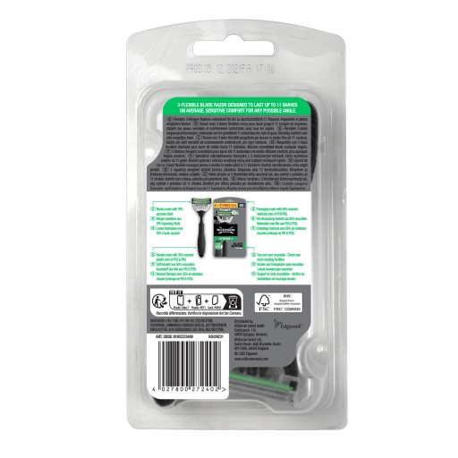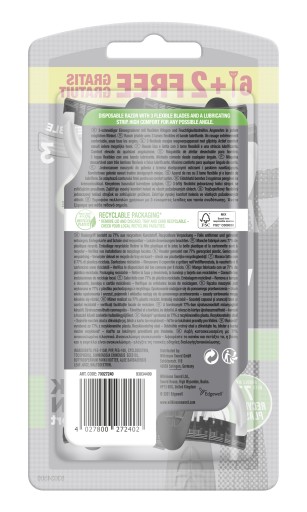Czarna rączka jest nie tylko niezwykle elegancka, ale także przyjazna dla środowiska: została wykonana w 77% z plastiku pochodzącego z recyklingu (plastiku pokonsumenckiego). Właśnie tak powinno wyglądać golenie.