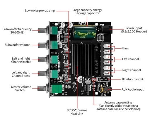 Усилитель BT 2x 50 Вт + 100 Вт Сабвуфер Регулировка звука