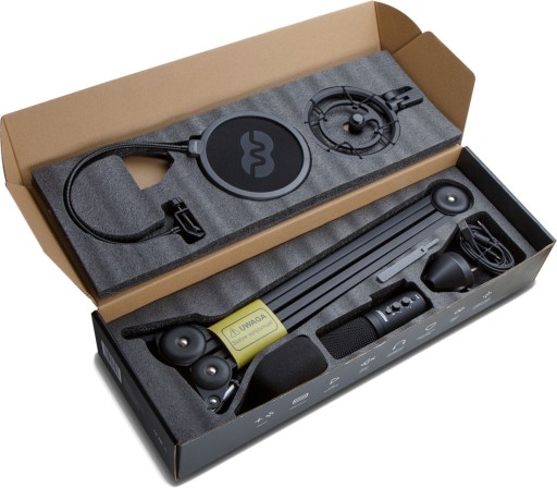 Mikrofon i elementy zestawu wykonane są z dbałością o najmniejsze szczegóły. Sama konstrukcja mikrofonu wzbudza zaufanie już przy pierwszym kontakcie. Ciężka, wyważona metalowa obudowa o czarnym, matowym malowaniu proszkowym daje poczucie obcowania z produktem z gatunku premium. Pop filtr to sprawdzone rozwiązanie które zdało egzamin również w innych zestawach mikrofonowych. Mikrofon umożliwia pracę w dwóch charakterystykach tj. kardioidalnej oraz ósemkowej. W zależności od potrzeb stanowiskowych możesz prosto zmienić sposób rejestrowania. Diody Led pomogą Ci odnaleźć się w trybie pracy bez potrzeby patrzenia na fizyczne przyciski. Tryb „8” świetnie sprawdza się w przypadku potrzeby nagrywania np. dwóch źródeł dźwięku (wywiad). Kardioidalny natomiast zdecydowanie lepiej odnajdzie się w zastosowaniach np. streamingowych, skupiając się na rejestrowaniu dźwięku głównie z przodu i częściowo po bokach. Charakterystyka tego typu powinna pomóc minimalizować docieranie dźwięków poza tym spektrum.