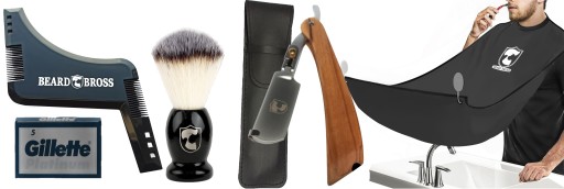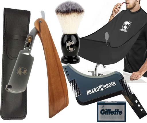 Brzytwa do golenia Beard Bross na żyletki, peleryna, pędzel do golenia, szablon / wzornik