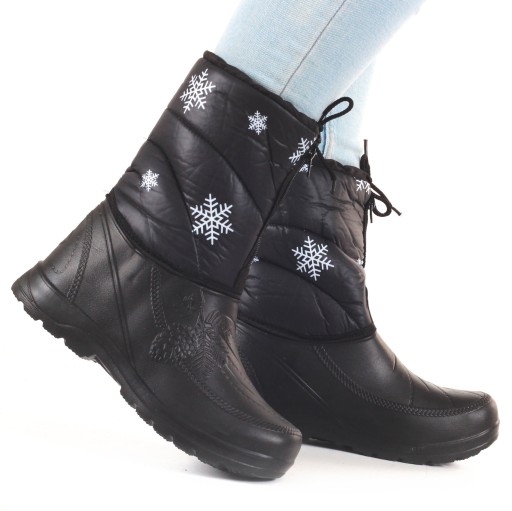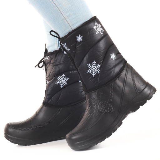 Damskie, zimowe śniegowce w kolorze czarnym lub granatowym ( kolor wybierany losowo ). Posiadają ocieplenie w postaci ciepłej pianki. ⭐ Zapięcie na zamek umożliwia łatwe zakładanie. Posiadają wodoodporną, solidną, grubą piankową podeszwę izolującą od zimna. �