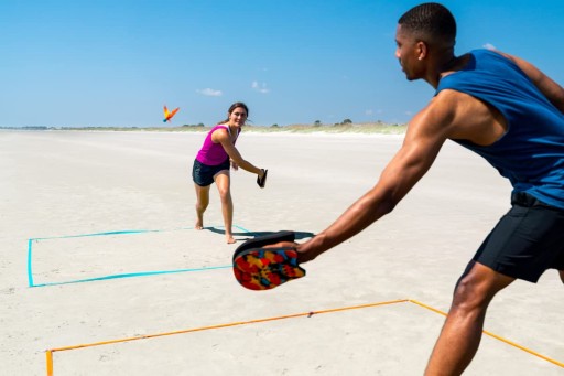 Zestaw dla dwóch graczy – zawiera 2 łopatki do noszenia i 2 małe ptaki (lotki). Jeden rozmiar pasuje do większości osób. Pasuje do każdej ręki. Uderz z przodu lub z tyłu. Większy zakres ruchu. Nie wymaga siatki! Zabierz swój tenis i badminton w podróż. Idealny do gier na podwórku i w parku.