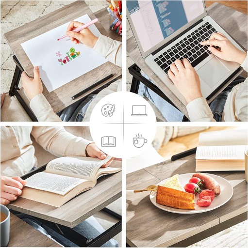 Ten duży stojak na laptopa o wymiarach 55 x 35 x 23 cm zapewnia idealne miejsce na oglądanie filmów, surfowanie w Internecie lub romantyczne śniadanie w łóżku. Nadaje się również do pracy lub zabawy na przenośnym biurku. Po złożeniu można go zabrać ze sobą na piknik lub kemping, ponieważ zajmuje mało miejsca do przechowywania.