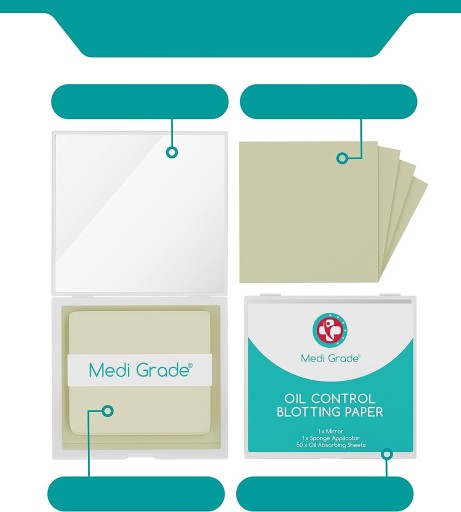 Kontroluj, wchłaniaj i odświeżaj tłustą skórę przez cały dzień za pomocą dołączonych bibułek matujących z zestawu.