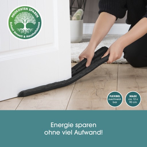 To coś wnosi! uszczelka jest po prostu wciśnięta pod drzwi pokoju. Zapewnia tam dwustronną ochronę przed przeciągami. Zapachy, dźwięki, światło i kurz również "pozostają na zewnątrz". Zimą uszczelka ciągu utrzymuje cieplejsze pomieszczenia, a latem chłodniejsze. Oznacza to, że ogólnie potrzeba mniej ogrzewania lub chłodzenia - oszczędza to koszty energii, chroni budżet domowy i środowisko!