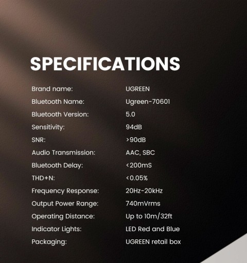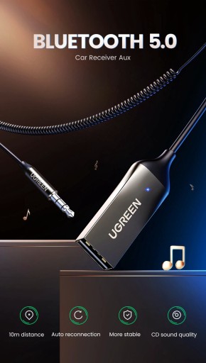 Chcesz połączyć smartfon z odtwarzaczem car audio, a irytuje Cię ciągłe podłączanie przewodu aux? Adapter UGREEN CM309 rozwiąże ten problem. Przeznaczeniem tego praktycznego urządzenia jest przekazywanie muzyki nadawanej przez komunikację Bluetooth z urządzeń takich jak smartfon czy tablet, do odbiorników typu amplituner, zestaw głośnikowy lub odtwarzacz car audio za pomocą przewodu AUX 3,5mm. Adapter UGREEN jest wstecznie kompatybilny z Bluetooth 4.2 / 4.1 / 4.0 / 3.0 / 2.0 / 1.0