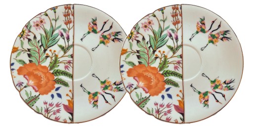 Piękny , niepowtarzalny , porcelanowy zestaw filiżanka ze spodkiem o niespotykanym wzorze i kształcie.