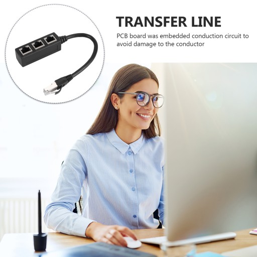 Korzystanie z 8-pinowego pozłacanego rdzenia w celu zapewnienia transmisji sygnałów. Płytka PCB została osadzona w obwodzie przewodzącym, aby uniknąć uszkodzenia przewodu. Może chronić zewnętrzne zakłócenia sygnału elektromagnetycznego, aby zapobiec uszkodzeniu sygnału internetowego. Za pomocą tego rozgałęźnika można połączyć trzy kable sieciowe w dłuższy kabel.