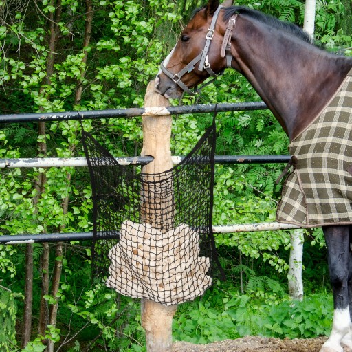 Wisząca torba na siano dla koni. Torba do przechowywania siana. Siano dla koni