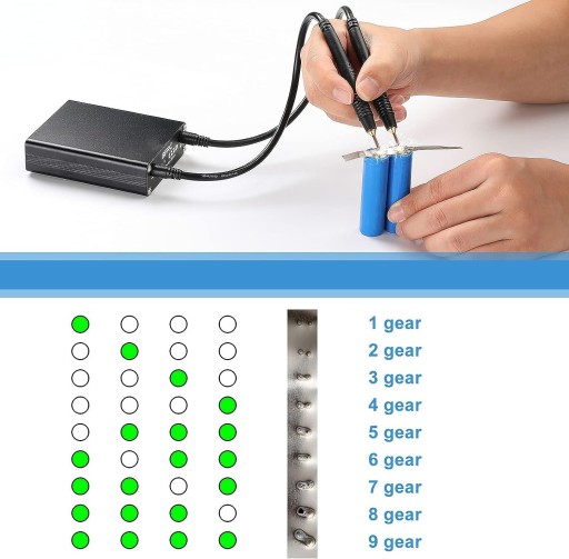 🌟2. Krótko naciśnij przycisk. Gdy zabrzmi sygnał dźwiękowy, jest to pozycja przełącznika. Naciśnij raz i można dodać 1 bieg. 1-9 cykli i 9. bieg to największy opór spawania.