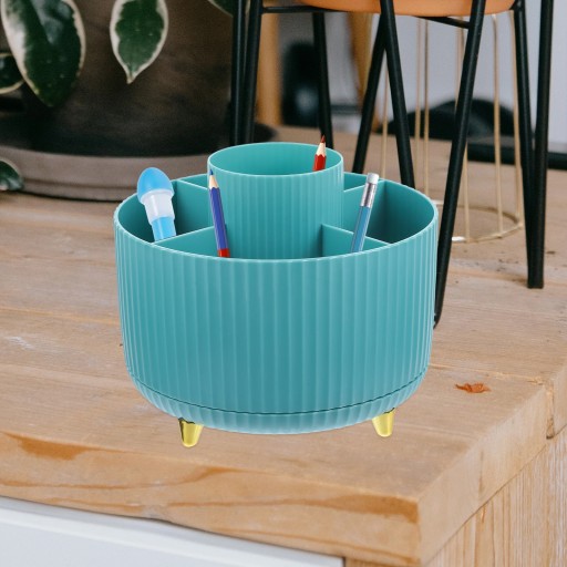 Dzięki obrotowej konstrukcji uchwyt na długopis ma dużą pojemność, może być