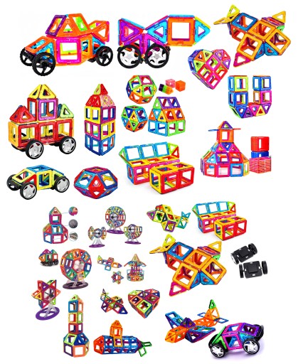 ZESTAW KLOCKÓW MAGNETYCZNYCH - KONSTRUKCYJNE PŁYTKI 124 elementy