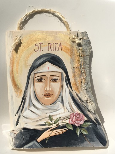 Święta Rita jest w ikonografii przedstawiana jako sprawczyni cudów pokoju. Dzisiaj często w intencjach za jej wstawiennictwem spotyka się prośby o zgodę w rodzinie czy dobrą atmosferę w środowisku pracy. Rita na ciemnym.