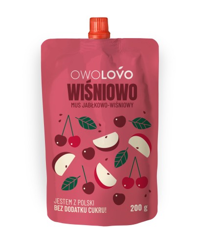 Słodka odmiana wiśni z pysznym jabłkiem pozytywnie cię zaskoczy zawsze, kiedy spróbujesz naszego musu owocowego OWOLOVO WIŚNIOWO.