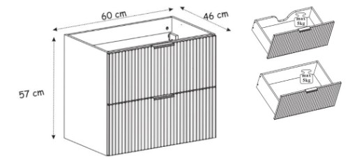 Cztery obszerne szuflady z prowadnicami kulkowymi, wyposażone w funkcję cichego domyku - SOFT CLOSE, to nie tylko praktyczne rozwiązanie, ale także gwarancja subtelności i komfortu w codziennym użytkowaniu. Miejsce na syfon sprawia, że nasze meble nie tylko zachwycają estetyką, ale także są perfekcyjnie dostosowane do potrzeb współczesnej łazienki.