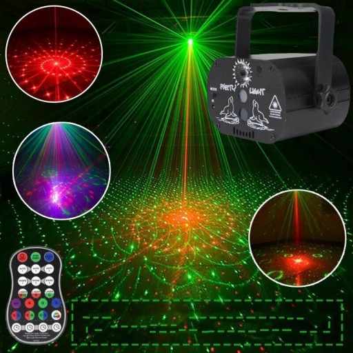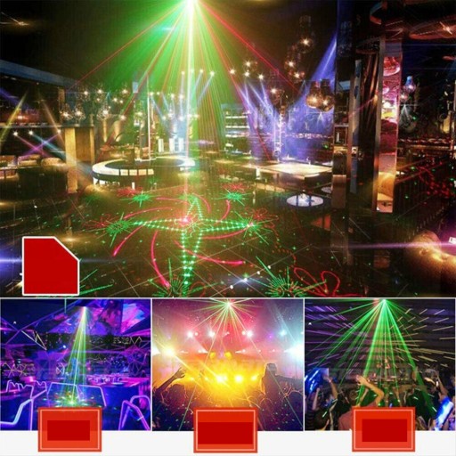 Ulepsz imprezowe światło laserowe, aby uzyskać 60 kombinacji obrazów, 6 kolorów tła (czerwony, zielony, niebieski, czerwony i zielony, czerwony i niebieski, niebieski i zielony) oraz 3 kombinacje wiązek (zielony, czerwony, zielony i czerwony), tworząc bardziej ekscytującą atmosferę sceniczną dzięki połączeniu wielu efektów i jakości projekcji w wysokiej rozdzielczości.
