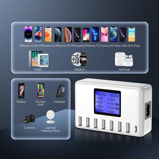 ЗАРЯДНОЕ УСТРОЙСТВО С 8 ПОРТАМИ, С ЖК-ДИСПЛЕЕМ, МНОГОПОРТОВАЯ ЗАРЯДНАЯ СТАНЦИЯ