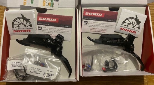 Najwyższej jakości, bardzo mocne hamulce hydrauliczne Sram Code RSC 950mm/1800mm. Komplet przód oraz tył zalany gotowy do montażu.